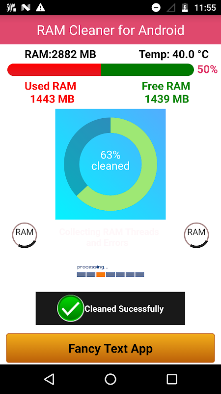 Obtenha mais espaço de memória RAM livre, limpando RAM a partir deste aplicativo.