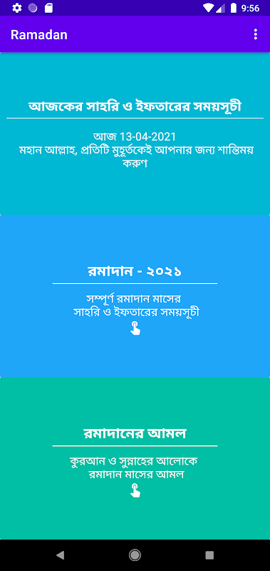 রমাদান অ্যাপটি তৈরি করা হয়েছে মূলত রমাদানের গুরুত্ব, ফজিলত, ইবাদাত এবং সাহরি ও ইফতারের সময়সূচী প্রকাশের জন্য। এটি সকল বাঙ্গালী মুসলিম ভাই-বোনের জন্য একটি গুরুত্বপূর্ণ অ্যাপ।