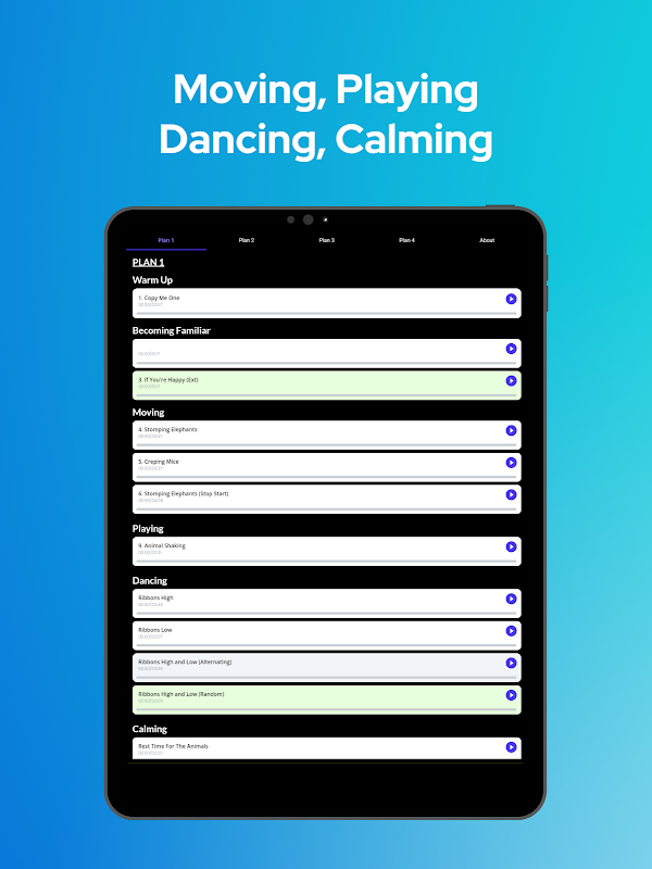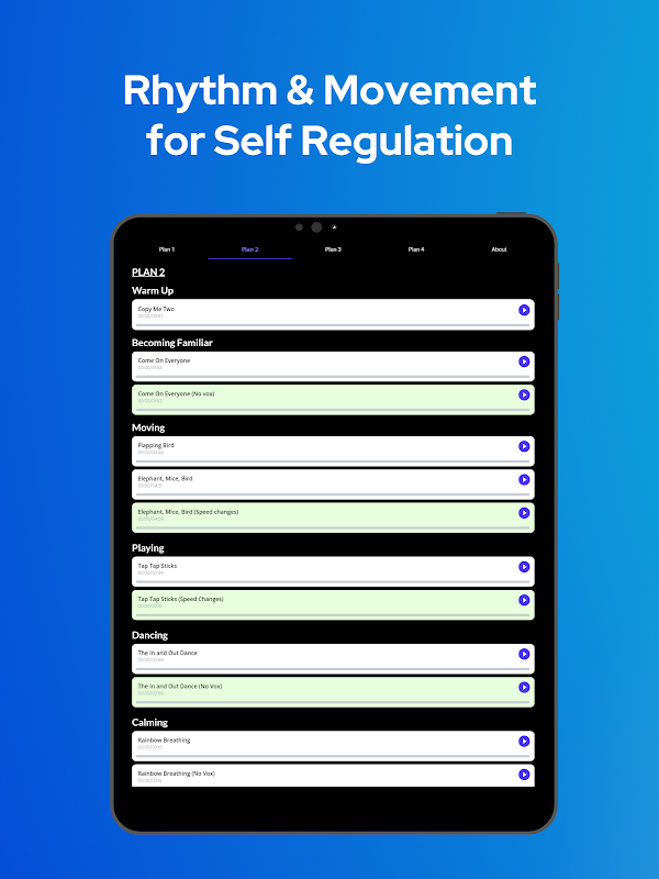 O aplicativo RAMSR T acompanha o programa RAMSR-T completo - um conjunto cuidadosamente projetado de atividades de movimento rítmico que podem ser realizadas em grupo ou com crianças individuais. As atividades visam estimular alguns dos mesmos benefícios principais que a aprendizagem de um instrumento musical pode proporcionar.