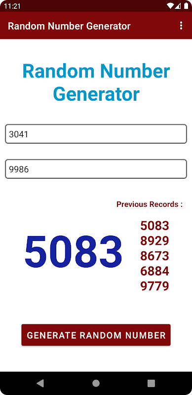 tags: RandomNumberGenerator, NumberGeneration, Randomness, DecisionMaking, GamingApp, Statistics, Simulation, HistoricalRecords, ChanceControl, RandomnessUnleashed, UnbiasedResults, NumberHistory, ConvenientApp, UserFriendlyInterface, PrivacyFirst, FreeApp, Dice, NoPermissionsRequired, VersatileTool, BoardGames, NumericalAnalysis