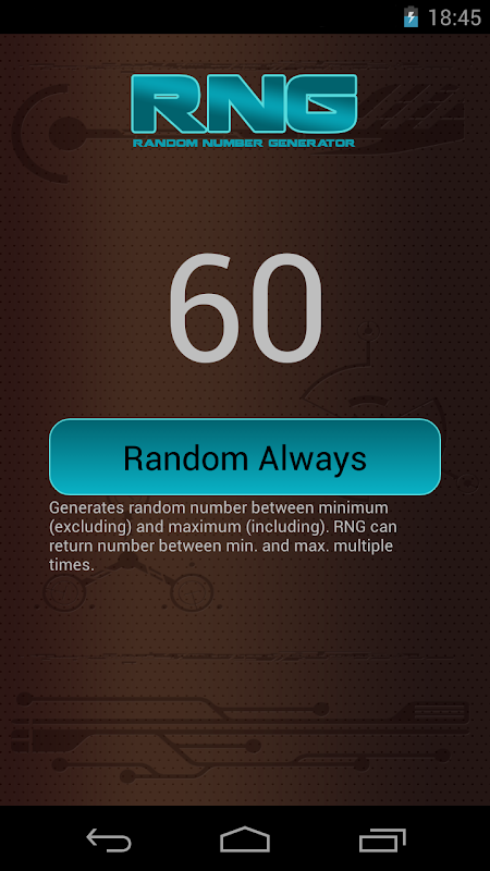★ Random Always: generates numbers between minimum and maximum. RNG can return number between min and max multiple times.