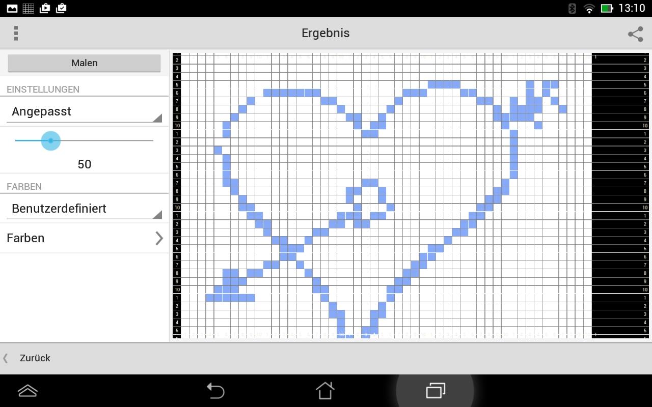 Vorlagen für Stecker-Perlen oder Stickereien aus beliebigen Bildern oder Fotos erstellen, speichern, drucken oder mit Freunden teilen.