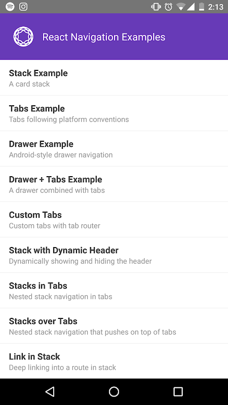 React Navigation Playground Examples