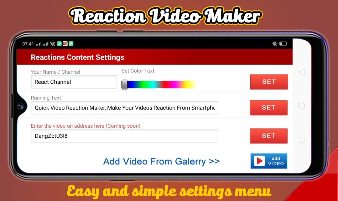 - Pode adicionar vídeos da galeria para serem exibidos na tela de reação do vídeo.