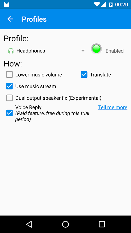 Você também não precisa ligá-lo manualmente - você pode configurá-lo para lê-los automaticamente quando estiver conectado a fones de ouvido ou a um dispositivo bluetooth específico (ou seja, seu carro), totalmente viva-voz!