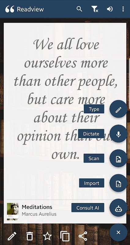Quer você seja um amante de livros, um estudante ou simplesmente alguém que gosta de ler, Readview é a ferramenta perfeita para acompanhar todas as suas passagens favoritas. Com a capacidade de inserir conteúdo manualmente ou importá-lo de leitores eletrônicos ou até mesmo de livros impressos, você nunca mais esquecerá uma citação ou visão favorita.