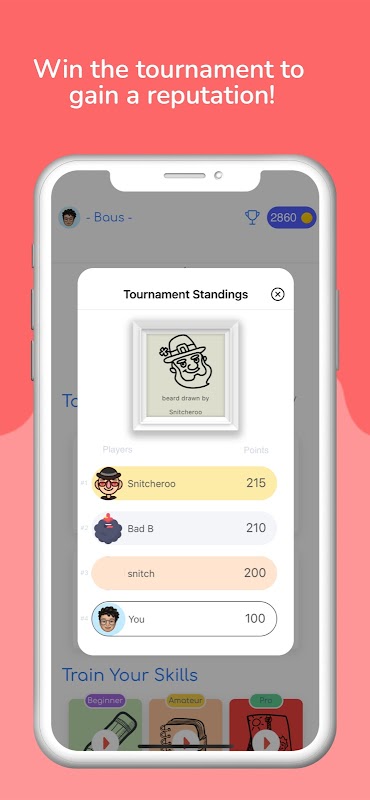 Participate in weekly tournaments where the best drawing is showcased and gains 1000XP and 1000 gold.