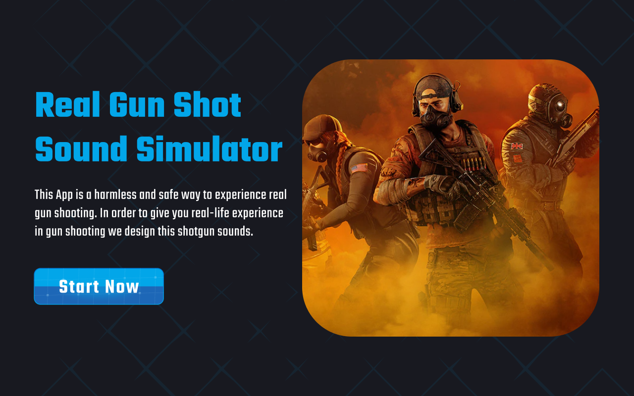 Gun Sound é um dos aplicativos de armas explosivas que simula sons poderosos de armas e bombas-relógio para servir à sua paixão pela guerra e armas poderosas sem causar nenhum dano. Este jogo adiciona uma coleção diversificada de bombas-relógio, explodindo com sons e efeitos de explosão claros, nítidos e realistas. Você pode usá-lo para pregar peças em seus amigos.