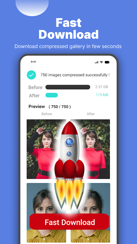 Comprima galerias inteiras sem esforço em segundos. Não há necessidade de escolher, basta selecionar uma pasta e ver suas preocupações com armazenamento desaparecerem.