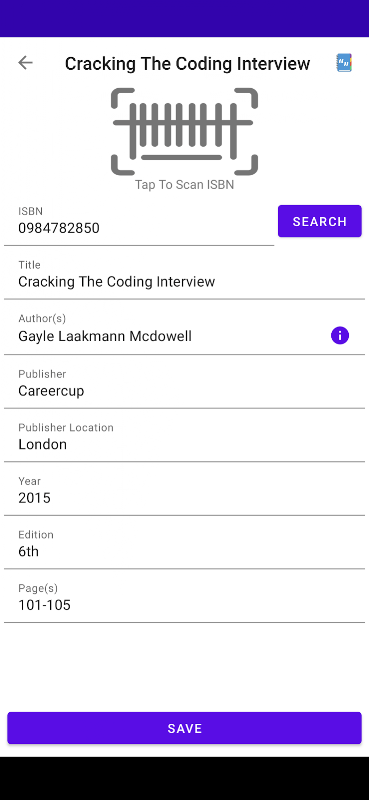 Ao lado da entrada manual de dados, o aplicativo apresenta um barcode scanner built-in, que permite que os usuários simplesmente escanear códigos de barras de um livro ou apresentar o seu ISBN, a fim de obter todas as informações relevantes.