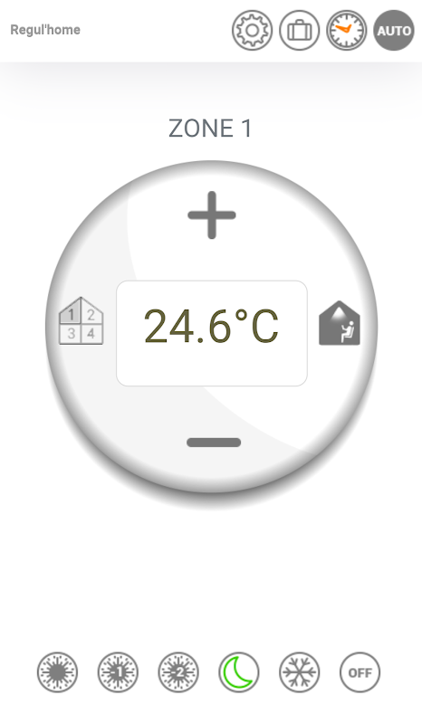 - Une fois associée au thermostat et aux nombreux modules de commande compatibles, l’appli Regul-home vous permet de programmer, contrôler et surveiller jusqu’à 4 zones de chauffage distinctes et jusqu’à 10 dispositifs de chauffage distincts par zone.