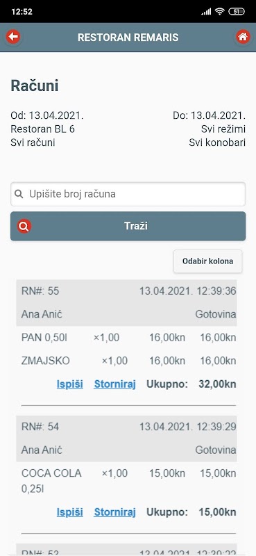 Relatórios e informações de aplicação Mestre Remaris em seu telefone Android.