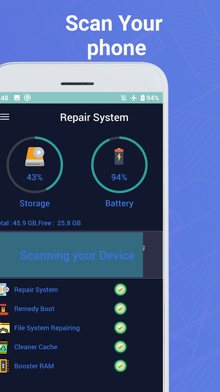 Com a ajuda de um novo sistema de reparo móvel All In One, você obterá muitas funções em um aplicativo para poder usá-las para otimizar o seu dispositivo e aumentar o desempenho. Aproveite o trabalho perfeito!