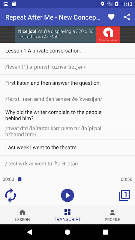 Repeat After Me - New Concept English Level 2 with 96 lessons include native speaker audio and transcript for learner who have intermediate level.