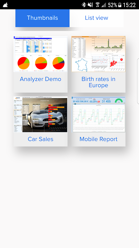 A aplicação móvel Analyzer disponível vai dar ao usuário final uma plataforma para exibir on-line e off-line os painéis e relatórios que ele tenha sido concedido acesso.