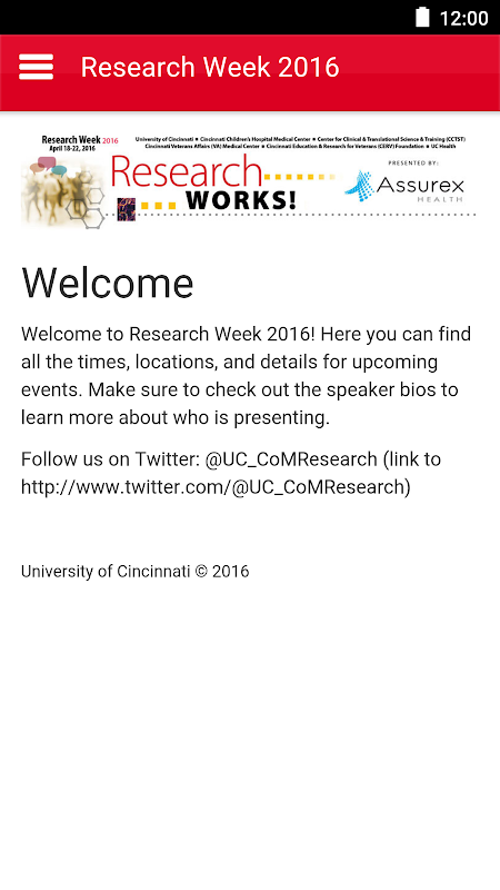 O aplicativo móvel Week Research é o companheiro perfeito para o 2016 evento Week Research, permitindo que você acesse rapidamente informações de apresentação, incluindo o tempo, localização e biografias de alto-falante. Você também pode fornecer feedback apresentação diretamente do aplicativo.