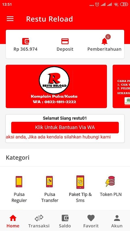 Somos um serviço de vendas com um sistema online. Recarga regular - Cota de dados - Tokens PLN - PLN pós-pago - BPJS - Cupons de jogos on-line - Recarregue o táxi da motocicleta Ojek e muitas outras necessidades. O depósito mínimo mais barato. Aproveite e aproveite a velocidade das transações com o aplicativo sem ser cobrado sms.