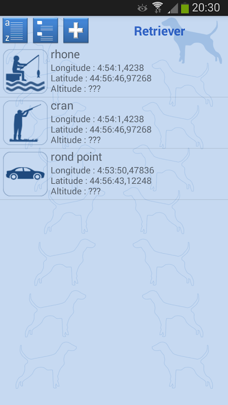 - to record where you are, giving it a name and assigning a location category: fishing, hunting, diving, picking, aerial sport, panorama, vehicle ...