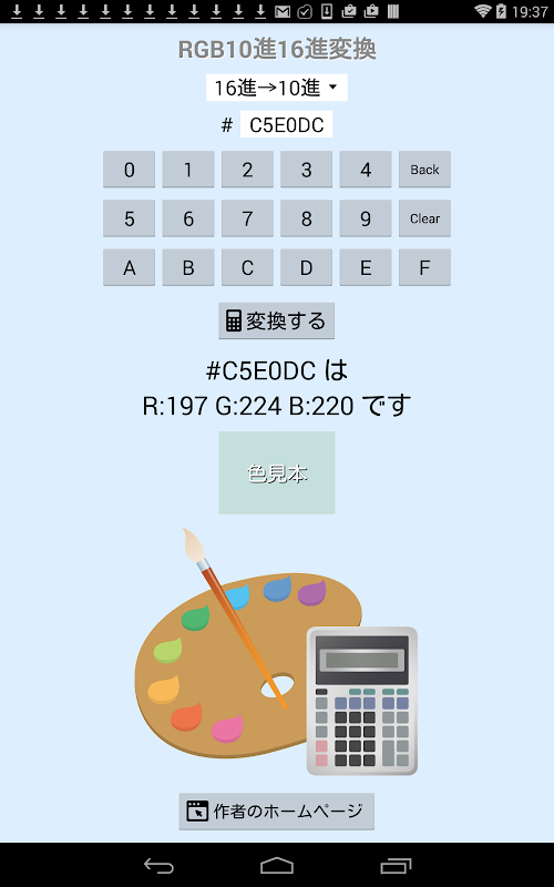 10進数のRGB値と、16進数のカラーカードを変換できます。