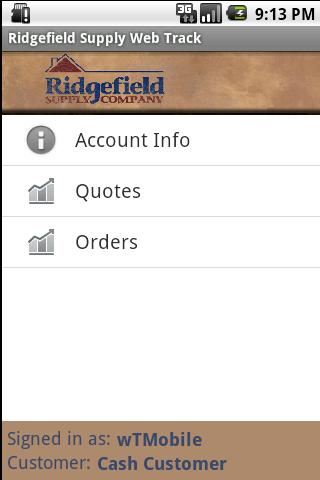 Qualquer cliente ou funcionário de Ridgefield Supply Company pode simplesmente baixar este aplicativo e digite um nome de usuário e senha fornecidos a eles para acessar o sistema