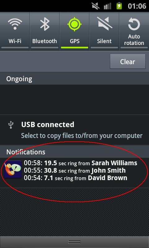 For example, some people tend to call you and hang up without giving you a chance to answer, now you can catch them in the act! Or consider an unusually long ring time could mean an urgent call you missed.