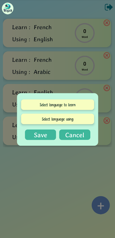Descubra o Ripit, seu aplicativo definitivo para dominar o vocabulário em árabe, inglês e francês! Com mais de 1.800 palavras, você pode aprender e praticar vocabulário essencial de uma forma divertida e interativa. Esteja você usando o francês para aprender inglês, o árabe para dominar o francês ou qualquer combinação, o VocabMaster se adapta às suas necessidades.