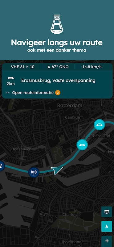 RiverGuide ajuda você como um capitão do interior no planejamento da viagem. Durante a viagem, o RiverGuide fornece todas as informações relevantes que você encontrará ao longo do caminho. Se você está procurando informações detalhadas de pontes ou eclusas, folgas verticais, tempos de operação, canal VHF ou número de telefone, elas estão sempre na parte superior da tela. Os avisos relevantes para os capitães são mostrados no mapa e no planejamento da sua viagem. Você nunca mais será surpreendido. A informação da maré está integrada em vários pontos do seu percurso.