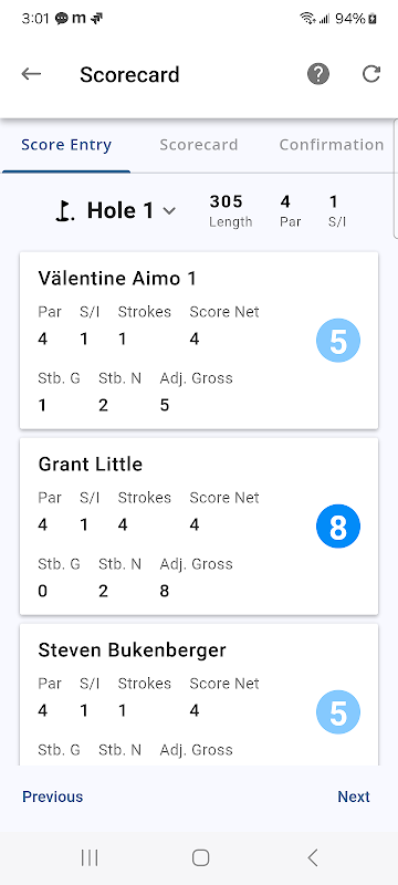 Um móbile que permite a entrada de pontuações para competições de golfe.