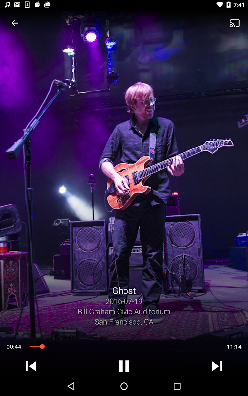 Um jogador Phish vivo com reprodução contínua, setlists, mostram avaliações e fotos.