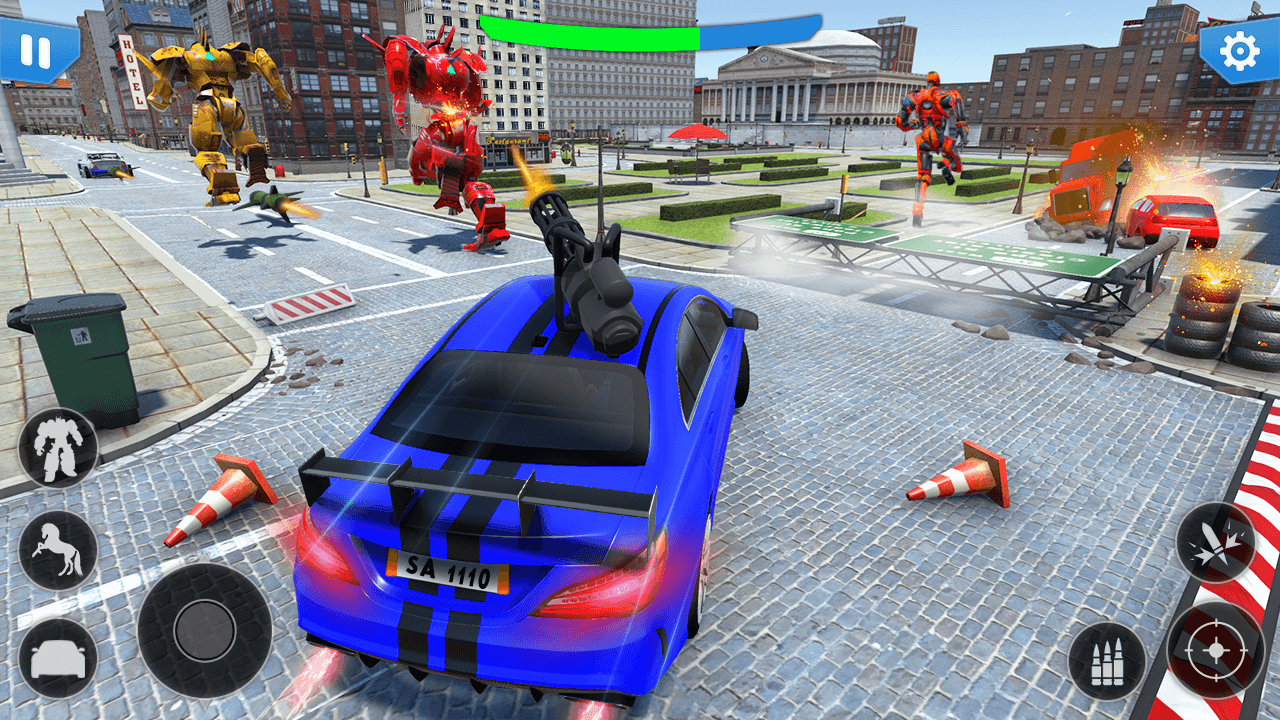 Torne-se parte desses jogos de robôs, milhares de usuários já estão jogando para vencer a batalha futurista de robôs. Realize missões de tiro de robô de carro para matar robôs gângsteres. Não é muito fácil competir com robôs malvados, eles têm superpoderes para atirar em você. Cuide da sua saúde enquanto ataca em jogos de transformação de robôs, caso contrário, você perderá a guerra do jogo de transformação de robôs. Você tem a chance de provar seu talento para a transformação de carros-robôs neste jogo de luta e transformação de robôs. Depois de jogar os níveis iniciais, o Robot Transform Car forçará você a jogar todos os modos deste desafiador jogo de robô gratuito. Divirta-se com as transformações de vários robôs. Você vai esquecer o robô aéreo e outros jogos de carros de transformação depois de jogar esses jogos de transformação de robôs.