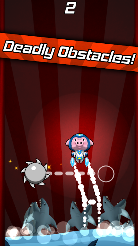 Como nosso intrépido herói, conhecido apenas como Rocket Pig, prepare-se para a sua acrobacia mais incrível de todos os tempos! Acima de você, um desafio de arcos de fogo mortais, serras zumbindo e luvas de soco! Abaixo de você, uma maré crescente de tubarões vorazes! Você sobreviverá??... provavelmente não.