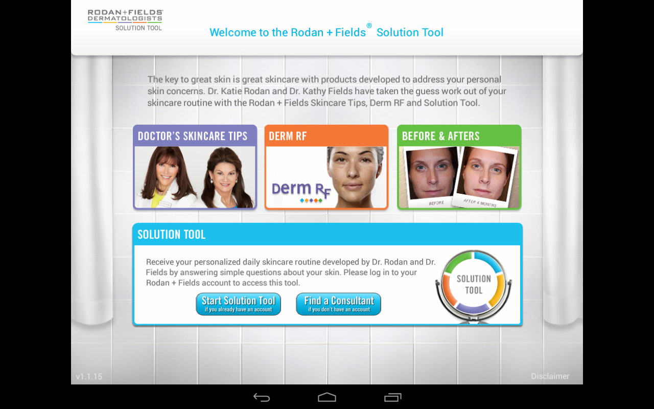 Receive custom skincare recommendations from Dr. Katie Rodan and Dr. Kathy Fields ... no appointment necessary with our Solution Tool. Created based on how leading dermatologists Dr. Katie Rodan and Dr. Kathy Fields work with their patients, this app recommends a Rodan + Fields skincare routine based on your answers to a few short questions. You can also access our library of “before & after” pictures, tips from the Doctors and our Derm RF blog.