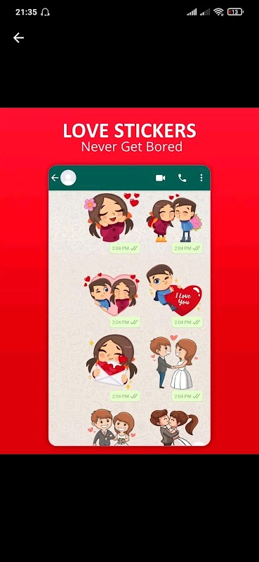 If you are looking for app stickers to express your love to your lover then you are at right place. Love stickers could express more than any wording conversation. We make amazing and lovely loves stickers for you. Now just click and send couple stickers and kiss stickers with amazing flower stickers to your love with just one click.
