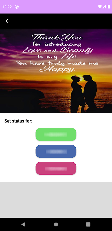 Não tenha medo de expressar seus sentimentos a alguém especial através de nosso aplicativo. Você pode compartilhar um vídeo romântico no Whatsapp, Instagram, Facebook ou na sua rede social favorita 💌. Basta selecionar a mensagem de amor romântico, apertar o botão de compartilhamento e curtir o status do vídeo. Você também pode compartilhar imagens de amor para o dia dos namorados.