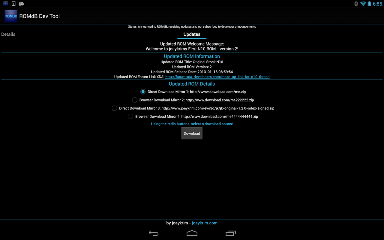 ** Facilmente baixar atualizações de ROM (incluindo correspondência de hash)