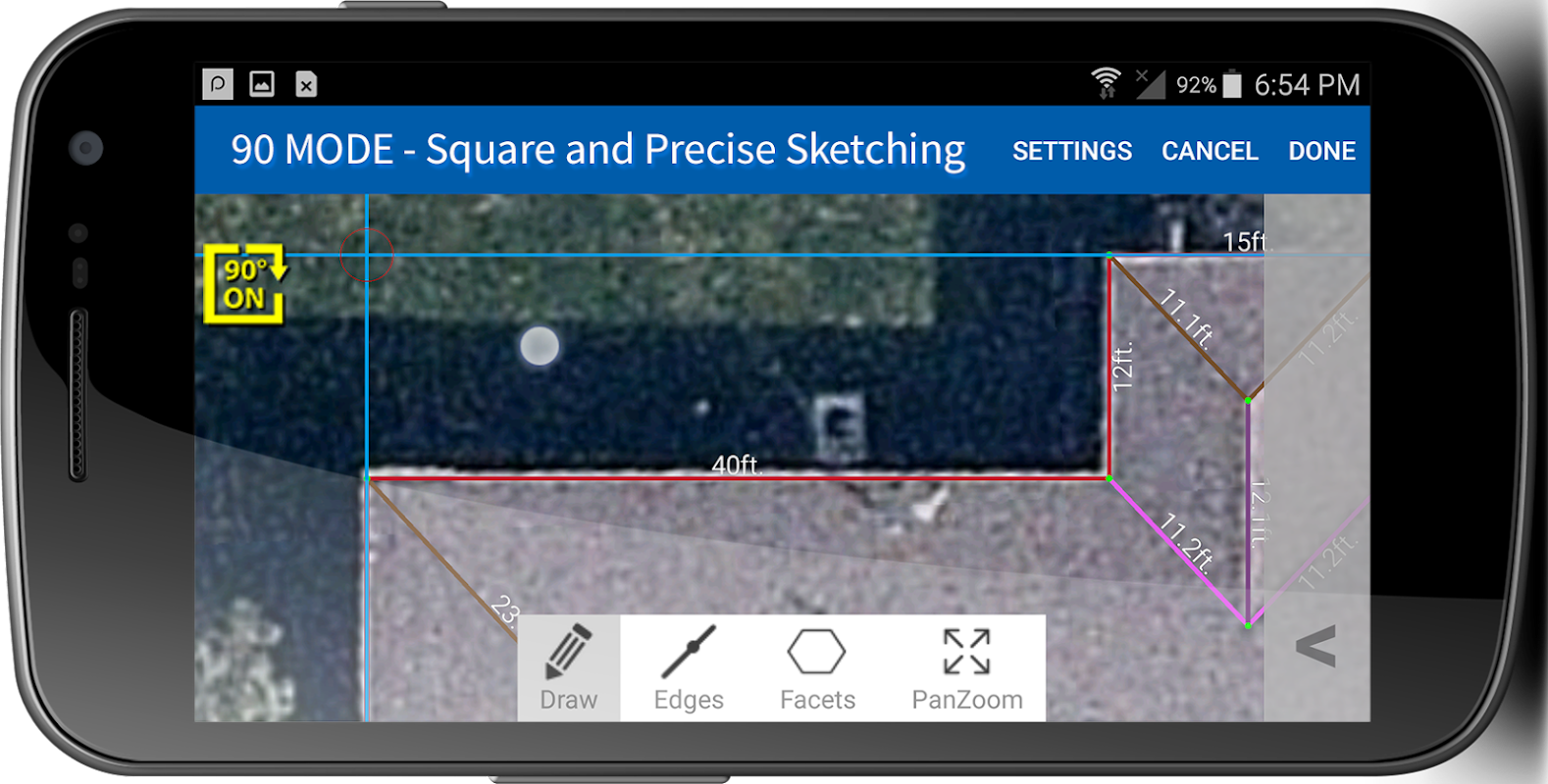 RoofSnap integra-se com fontes de imagens aéreas. A ferramenta de esboço no RoofSnap permite desenhar e rotular todas as linhas do telhado, incluindo arquitetura complexa e saliências. Depois que todas as facetas do telhado forem criadas, insira os valores de inclinação e RoofSnap fará toda a matemática para calcular a área de superfície e as medidas lineares. Você pode então exportar seu próprio relatório em PDF das medições e todas as imagens. Esse relatório incluirá o logotipo e as informações da sua empresa, totalmente personalizados por você, prontos para enviar ao seu cliente, avaliador de seguro ou equipe de produção. Para um telhado 30SQ médio, isso leva cerca de 5 minutos.