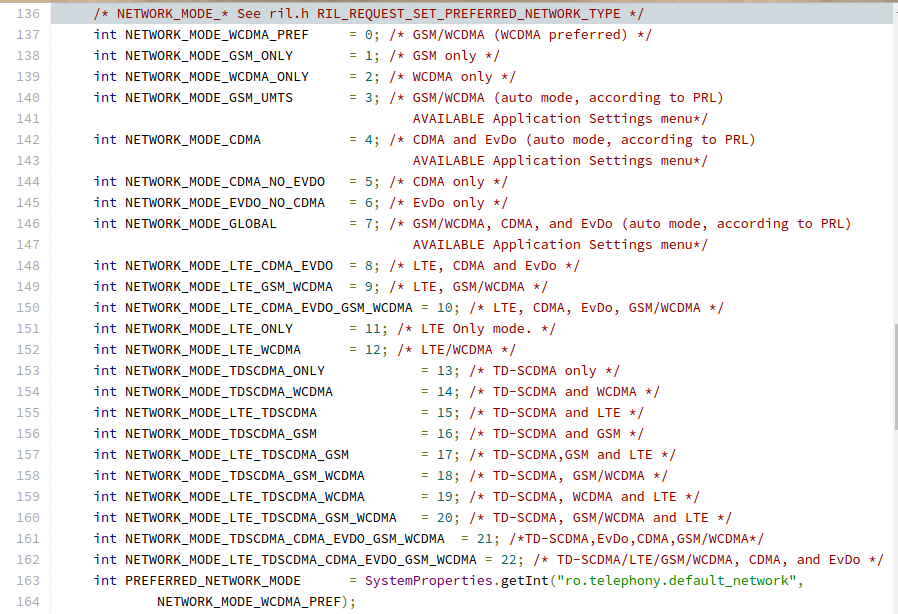 The type can be found in https://android.googlesource.com/platform/frameworks/base/+/master/telephony/java/com/android/internal/telephony/RILConstants.java#136.