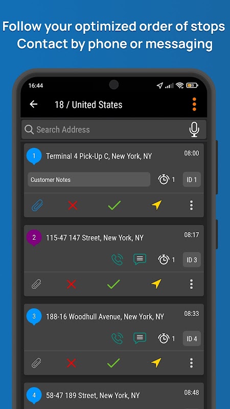Armazene nomes, números de telefone, fotos, localizações (latitude, longitude) e endereços de suas paradas.