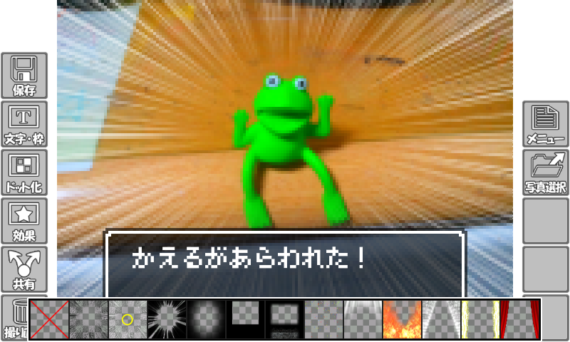 画面にタッチするだけで、RPG風の写真が取れます。
