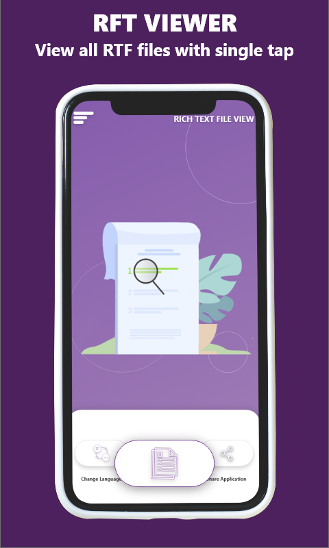 Você pode pesquisar o arquivo seletivo que deseja abrir usando a opção Pesquisa de arquivo RTF, que permite abrir o arquivo ou arquivos desejados sem procurá-los um por um no gerenciador de arquivos. A interface fácil de usar permite que bons leitores melhorem sua experiência de visualização e leitura de arquivos RTF em seus smartphones. O bom leitor usa para ler e visualizar vários documentos ou arquivos no telefone com apenas um clique para apoiá-los. Nosso leitor de arquivos RTF está lá apenas para torná-los capazes de visualizar arquivos RTF em seus telefones.