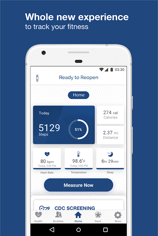The 'Ready To ReOpen' app allows you to link your COVE V7 smart band with your Android phone.