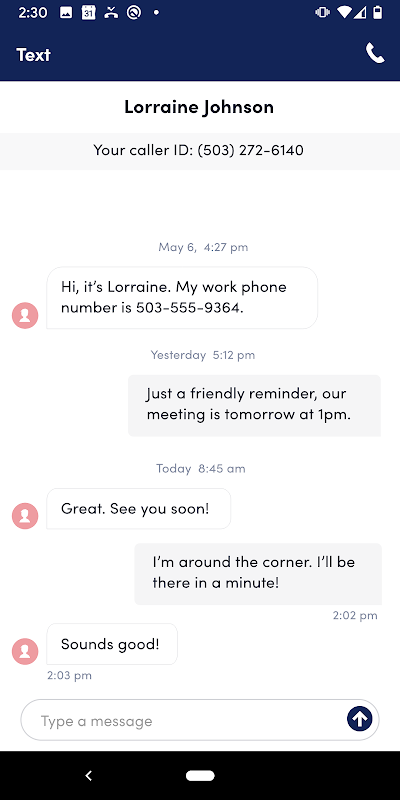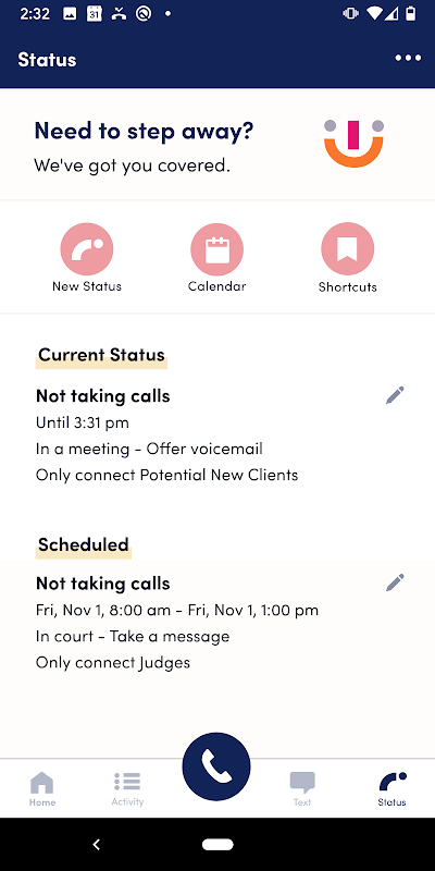 Tudo que você precisa para administrar seu negócio de qualquer lugar é Ruby e seu telefone celular. Use o aplicativo Ruby para Android para visualizar mensagens, atualizar seu status, fazer chamadas e enviar mensagens de texto do seu número comercial. Encaminhe facilmente suas chamadas de e para Ruby ou verifique seu uso enquanto estiver em trânsito.