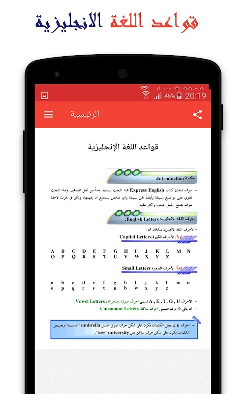 Um aplicativo abrangente de toda a gramática do inglês para todos os níveis desde o início Exortando você a aprender a língua inglesa Não acho que você precise pesquisar novamente a gramática do inglês depois de baixar este aplicativo de gramática do inglês, você encontrará nele tudo o que precisa e este aplicativo contém um conjunto de lições e regras Ele também fornece uma explicação simples de cada regra e encontramos entre essas lições as letras da língua inglesa, números da língua inglesa, regras substantivas, regras verbais, regras de adição, a frase da língua inglesa, escrevendo a hora, escrevendo a data, a diferença entre as línguas britânica e americana, questões de múltipla escolha e muito mais Grande quantidade.