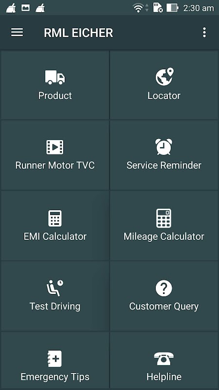 Calculadora EMI, calculadora Mileage e lembrete de serviço ajudarão os usuários de acordo. O número da linha direta também está disponível 24 horas por dia, 7 dias por semana, juntamente com a condução de teste e a consulta do cliente por e-mail. Então, todo o tempo que este aplicativo vai servir para os valiosos clientes RUNNER EICHER e dicas de emergência irá fornecer-lhe as dicas até à data.
