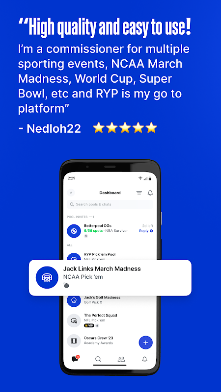 Com 11 esportes e uma seleção impressionante e diversificada de 42 opções de jogos, o RunYourPool atende às paixões de todos os amantes de esportes. Da intensidade de um criador de colchetes da NCAA à emoção da MLB ou do The Masters, há algo para todos.