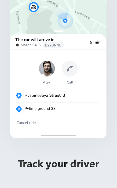 Encontre um motorista próximo e acompanhe sua viagem em tempo real.