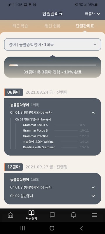 - Verifique o progresso detalhado dos materiais de aprendizagem do seu filho