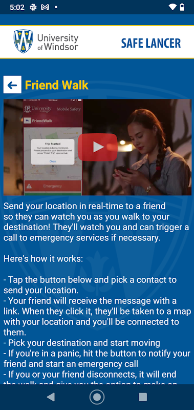 Milhares de estudantes, professores e funcionários da Universidade de Windsor já estão usando LANCER SAFE. Carregue hoje e garantir que você está preparado em caso de uma emergência.
