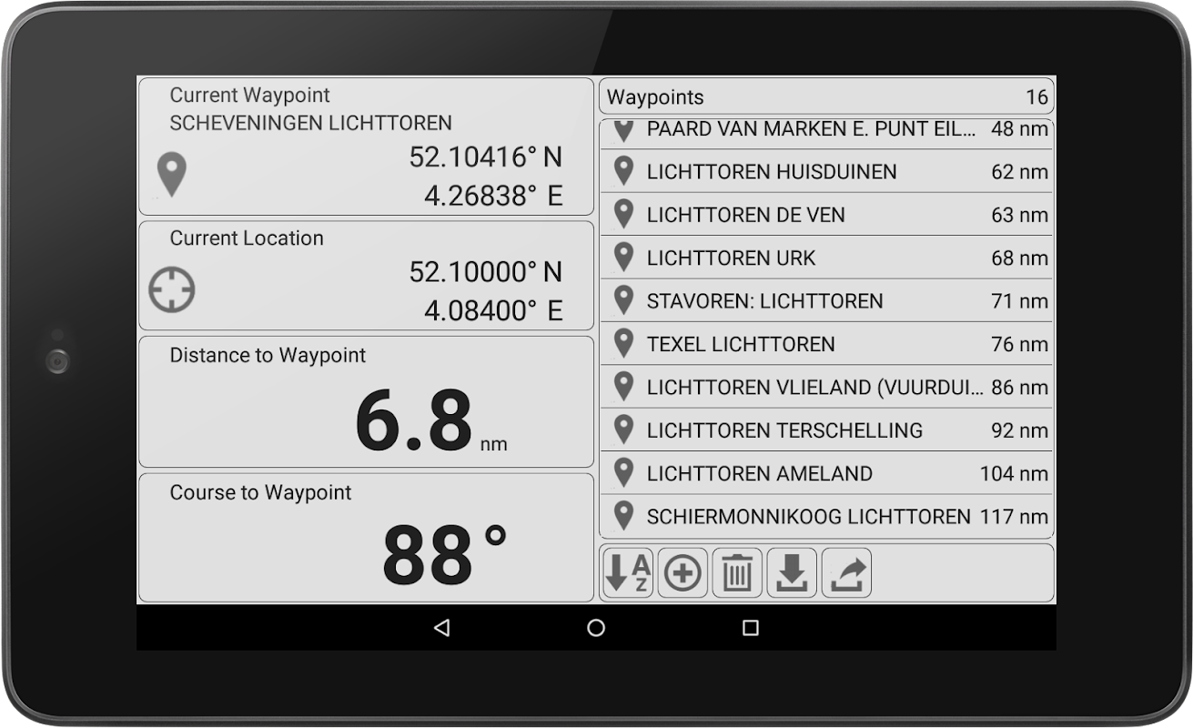 - Medição de distância em milhas náuticas e medidores. Também é útil para a ancoragem.