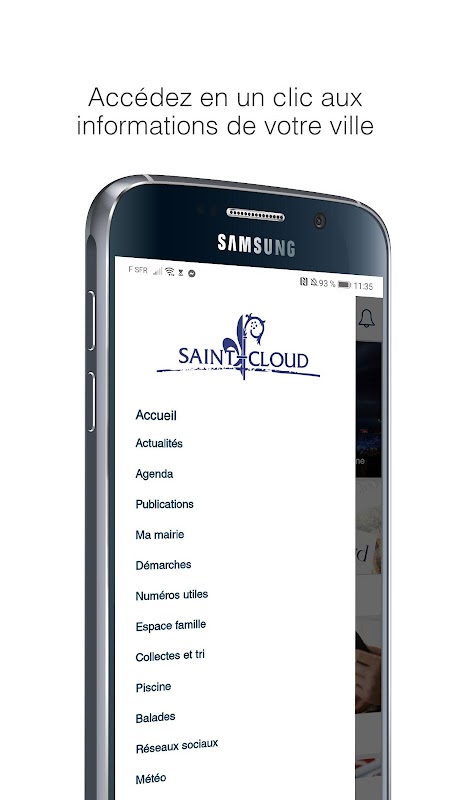 A aplicação da cidade de Saint-Cloud oferece notícias, agenda de eventos, números úteis dos serviços da prefeitura, notificações em tempo real e muito mais: